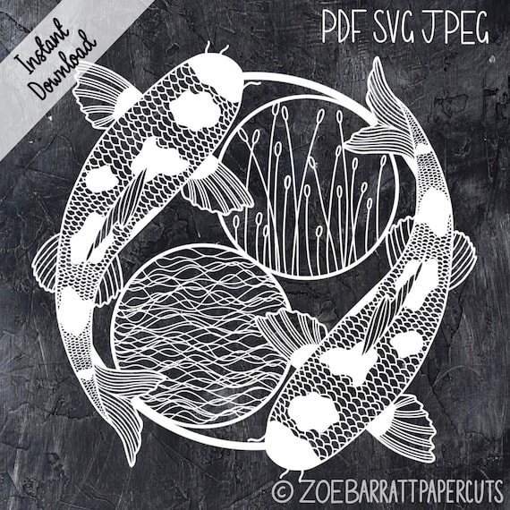 Japanese Koi Fish Papercutting Template Papercut Pattern Etsy Uk